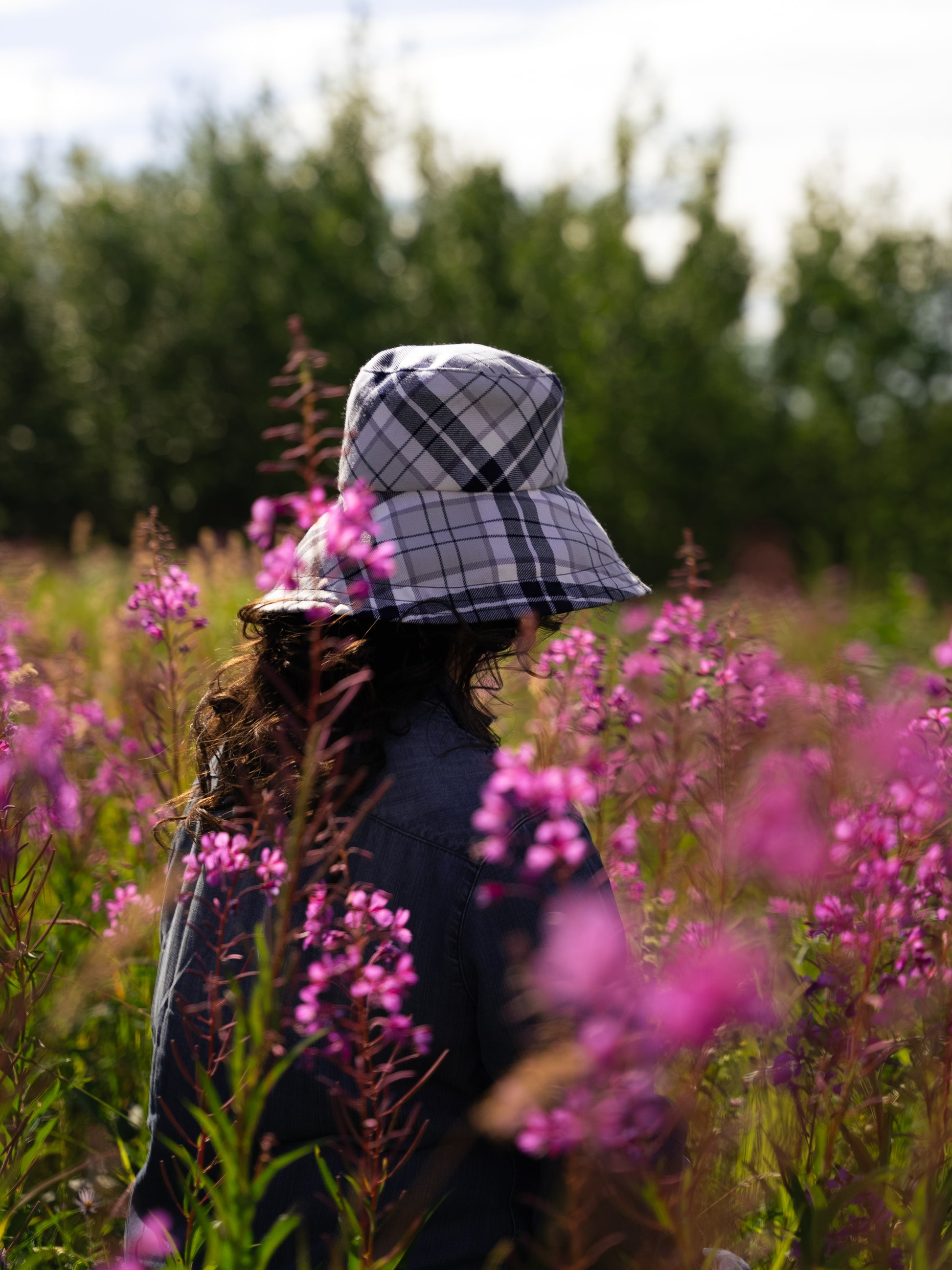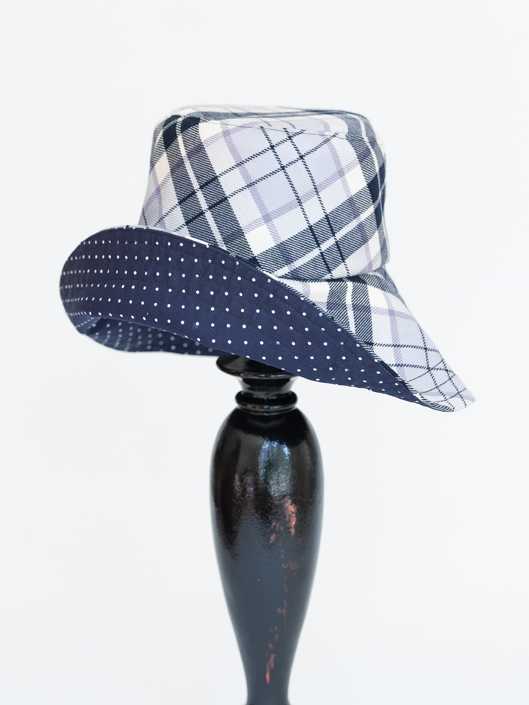 Shade yourself with our stylish and comfortable bucket hat made with our exclusive Arctic BlueBerry Tartan. It's lightweight and easy to pack for your next trip to Hawaii or the playground. Leave the brim down for shade, or roll it up and let the sunshine in. Handmade with our silky soft 100% wool cloth and fully lined, it's a wardrobe must.