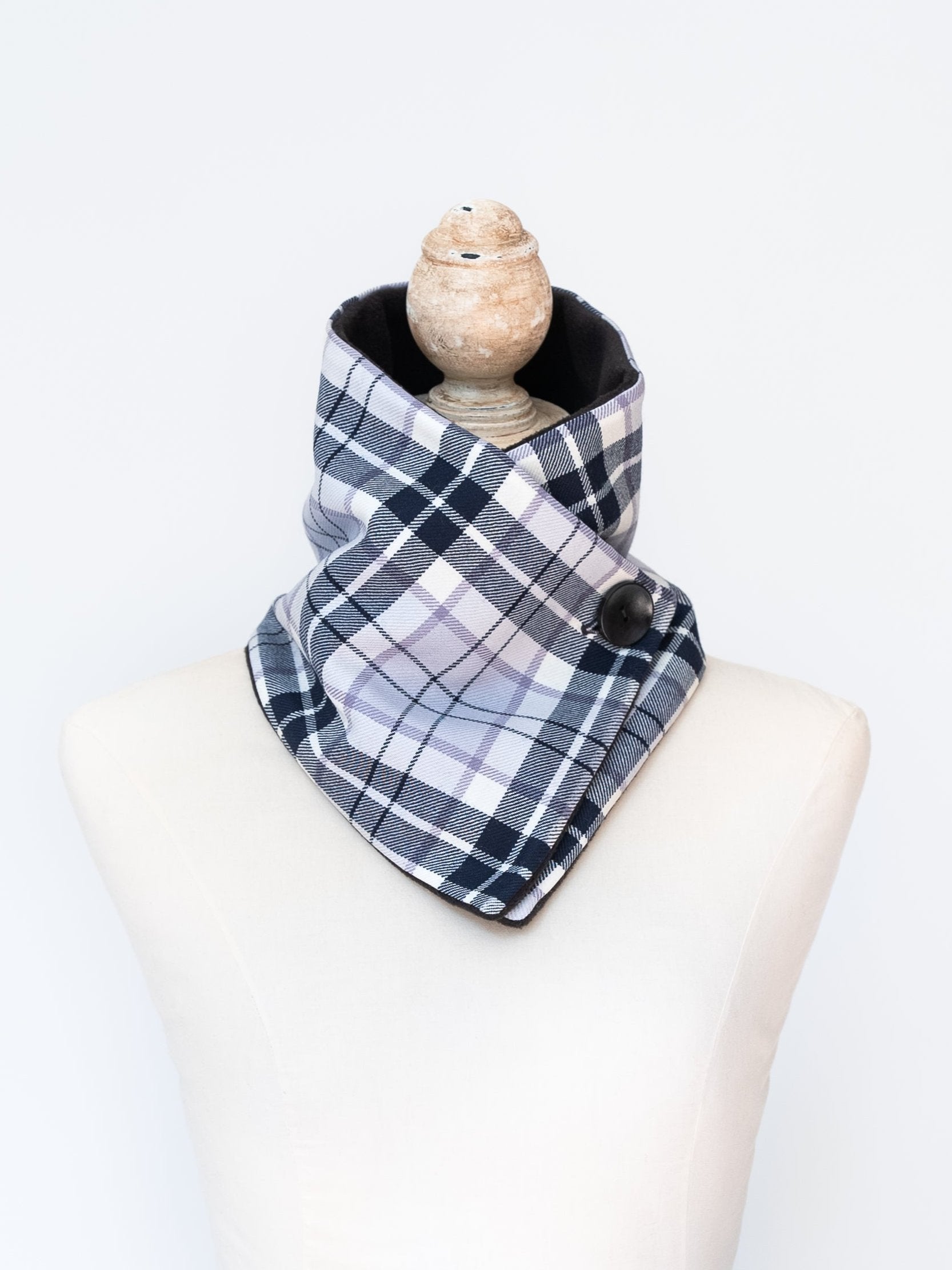 Snuggle up in our Arctic BlueBerry Tartan neck warmer and bring a touch of Alaska to your winter wardrobe. Inspired by the tiny arctic blueberry the blues, grays, and whites are sure to compliment your winter attire. This thoughtful alternative to the cumbersome scarf is made of soft wool, lined with luxe fleece, and secured with a button. A Tartan Chickadee® exclusive will keep you warm on the coldest days.
