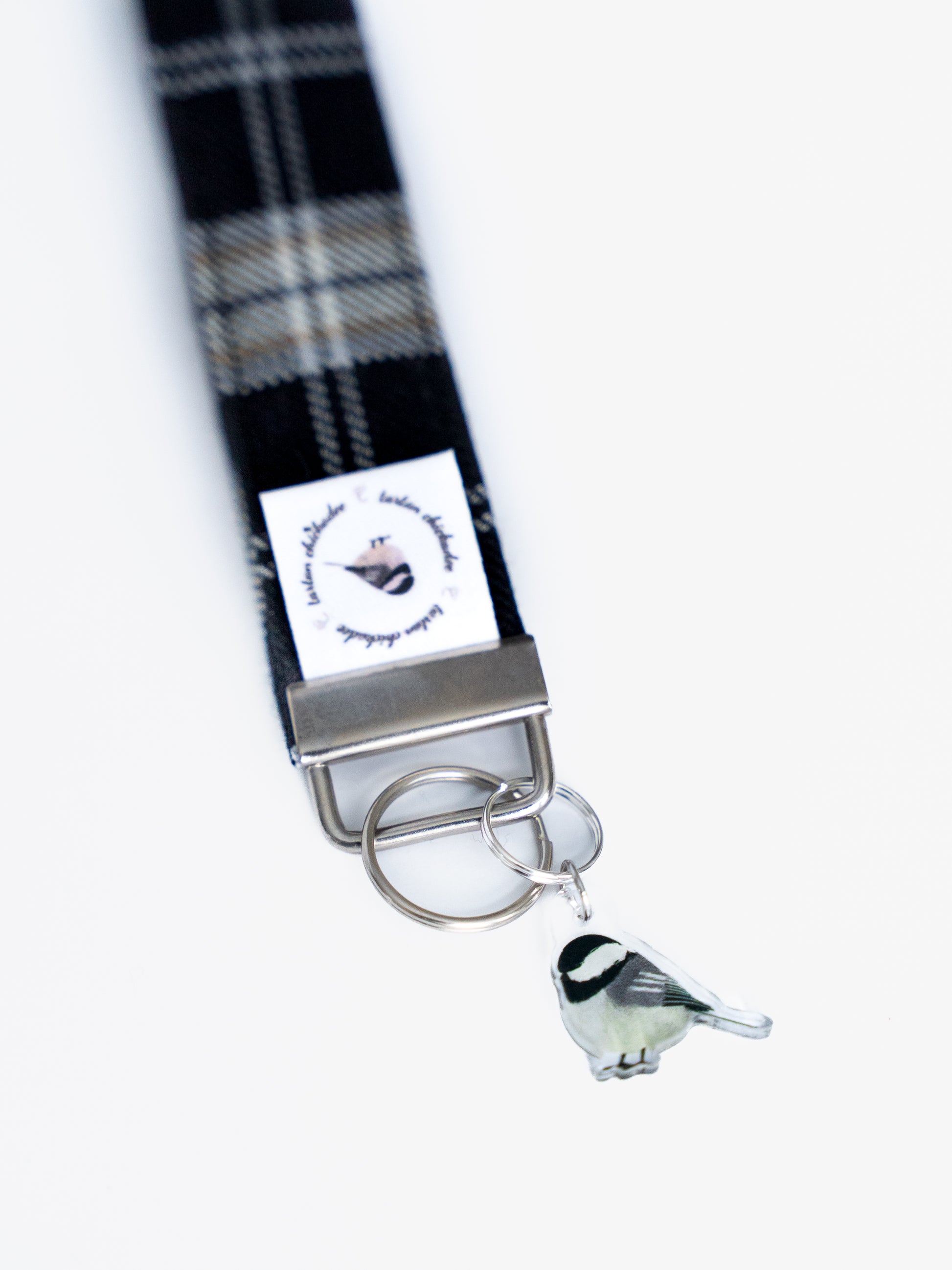 The Black-Capped Chickadee Tartan (plaid) Key Fob is a stylish and practical accessory from Tartan Chickadee®. Adorned with our unique Black-Capped Chickadee Tartan (plaid) and a cute acrylic Chickadee mascot, this key fob adds charm to your keys. Handy and durable, it keeps your keys secure and easy to spot, blending function with flair.