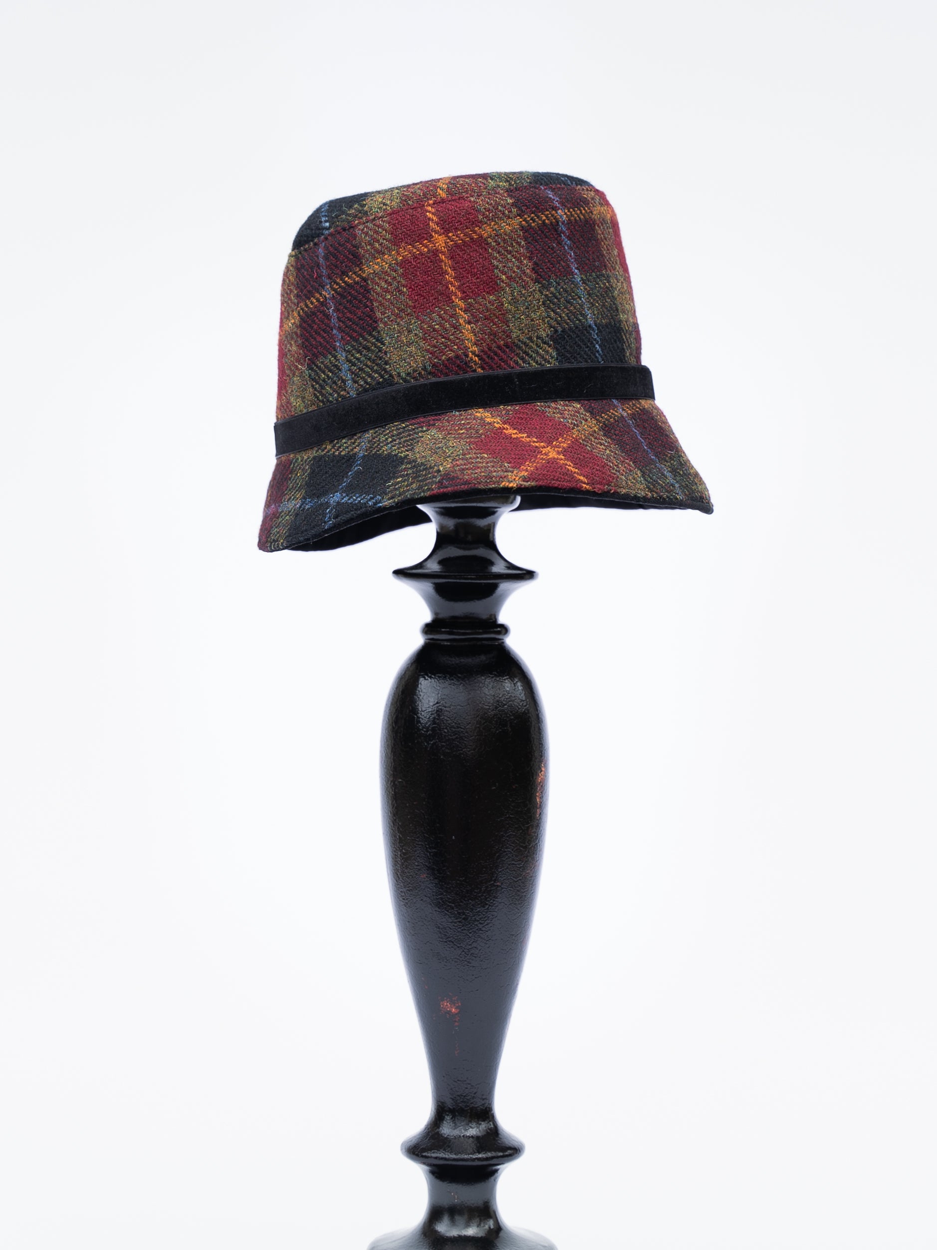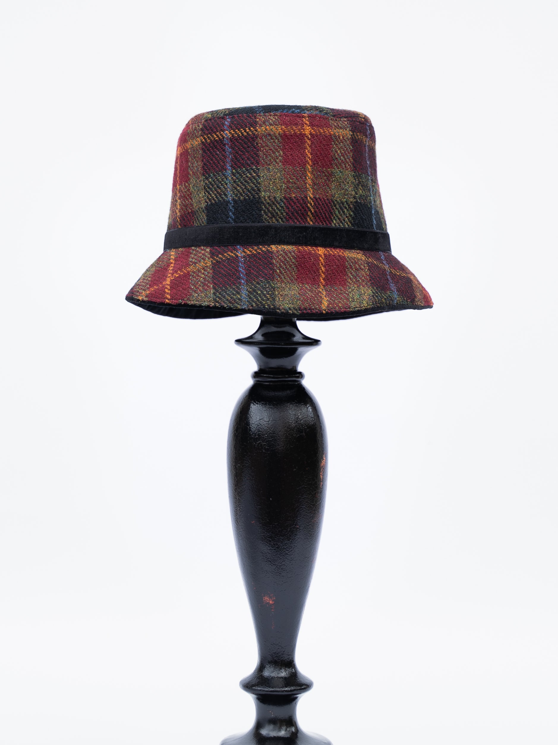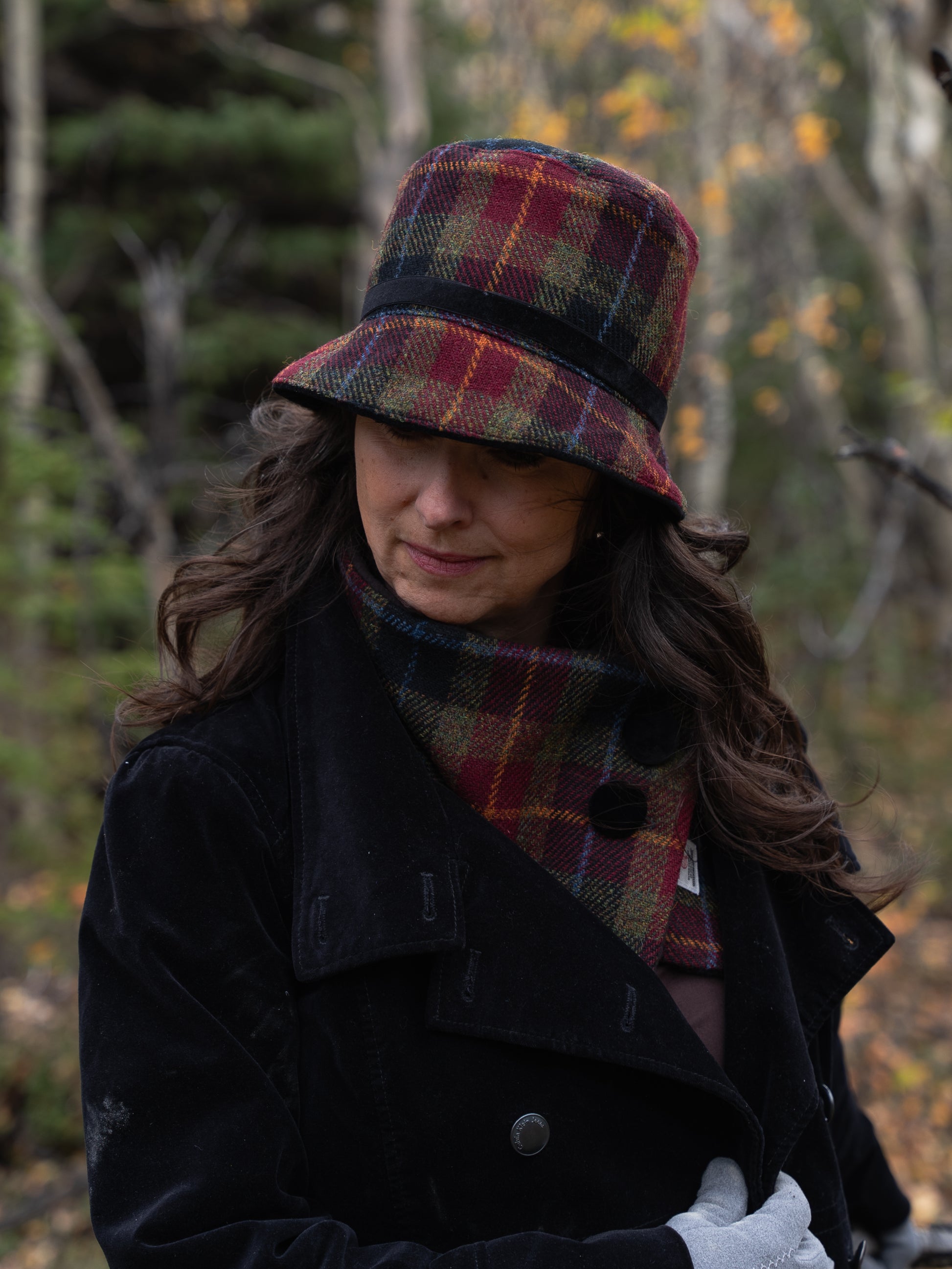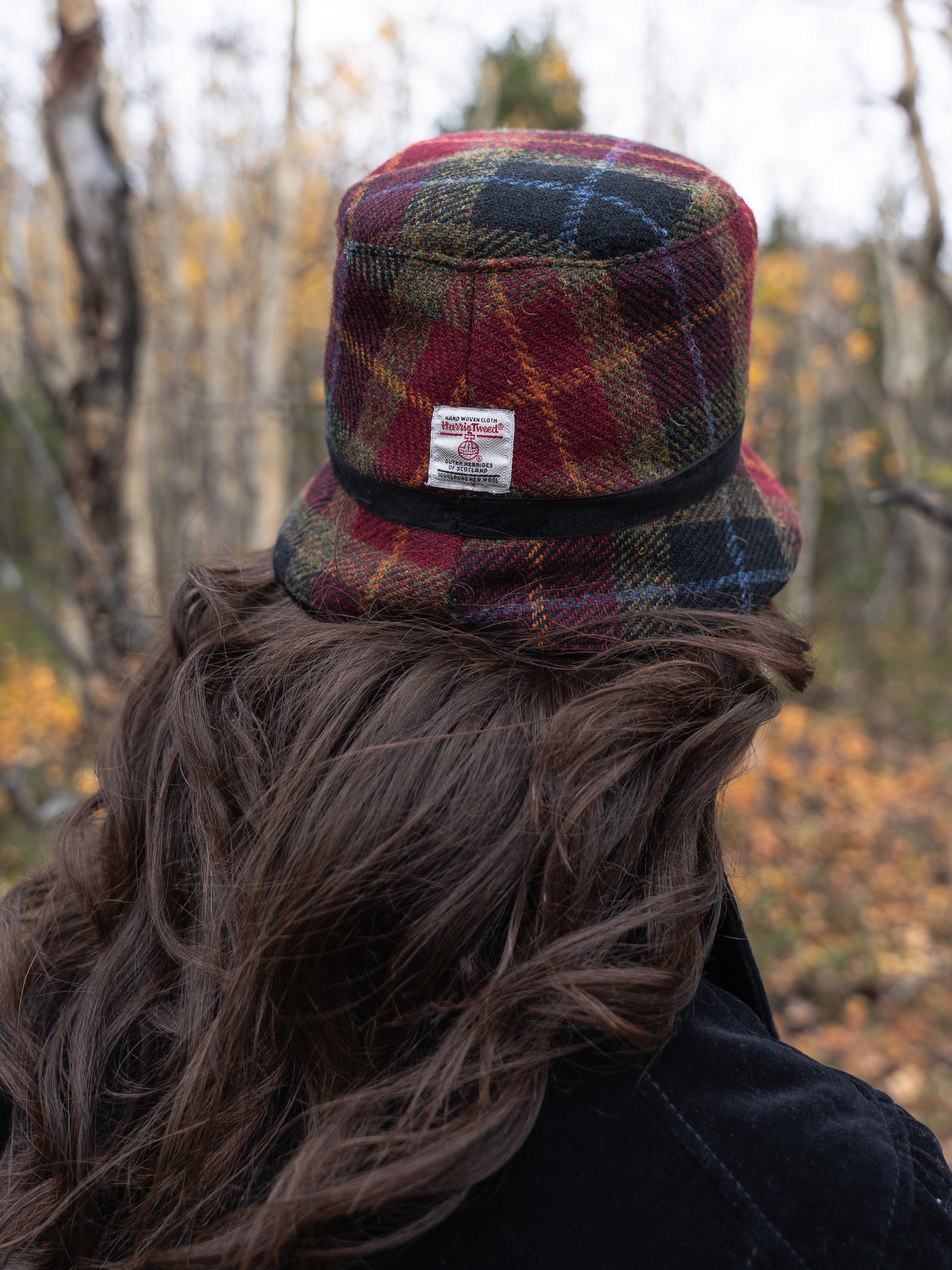 This limited edition Harris Tweed® hat features a captivating blend of burgundy, olive green, black, and sky blue, making it a standout accessory. The colors resemble the Alaskan cranberry tundra each fall. Lined with soft cotton, it provides cozy comfort during the colder months. Enhanced with handmade velvet buttons, it brings a refined touch to your look. Handwoven by skilled artisans in the Outer Hebrides of Scotland, this fabric reflects a rich heritage of craftsmanship that has been cherished for generations. Each hat is thoughtfully designed and sewn in Alaska. With only a few available, this distinctive piece perfectly combines classic elegance with Alaskan practicality.