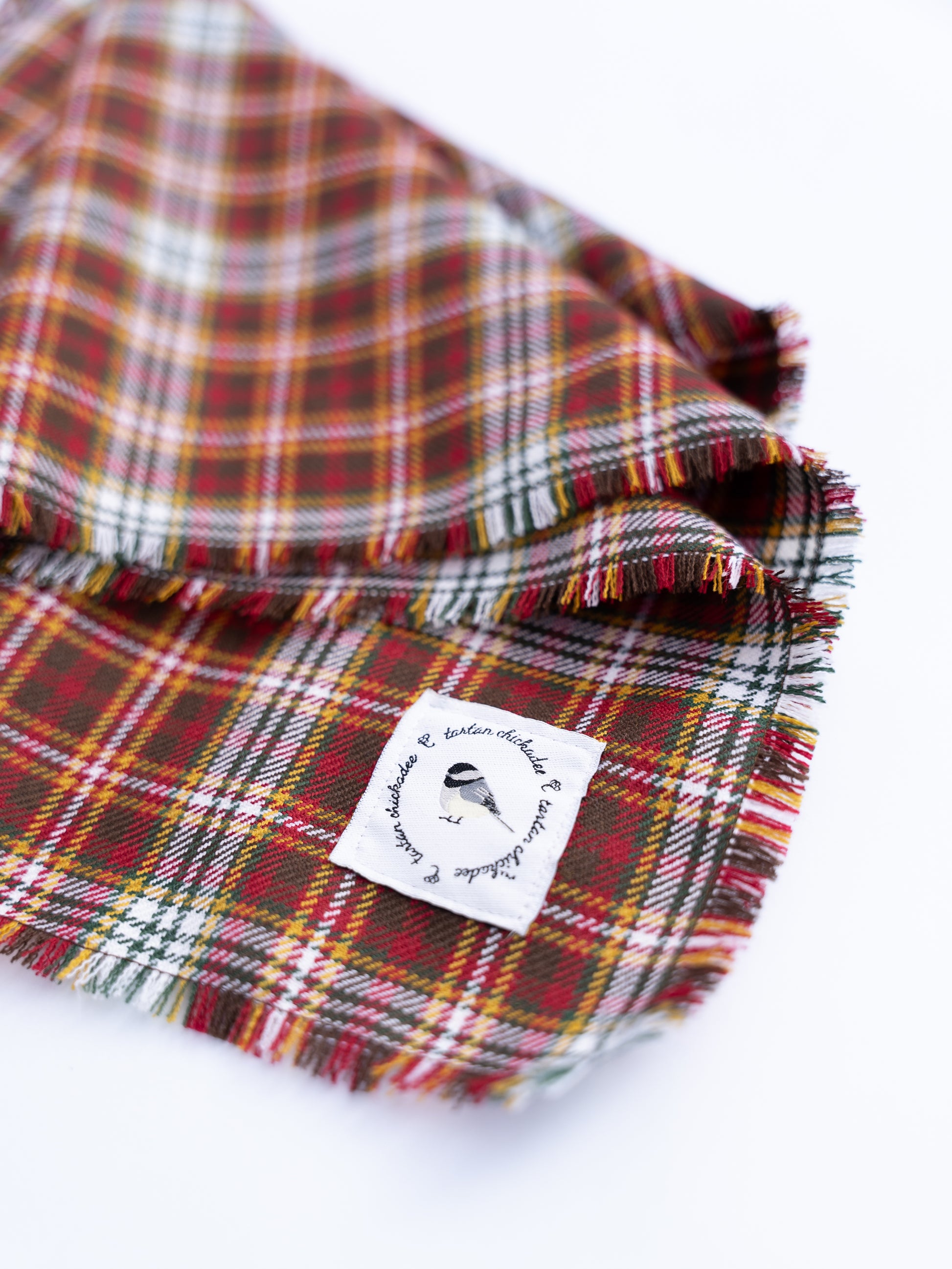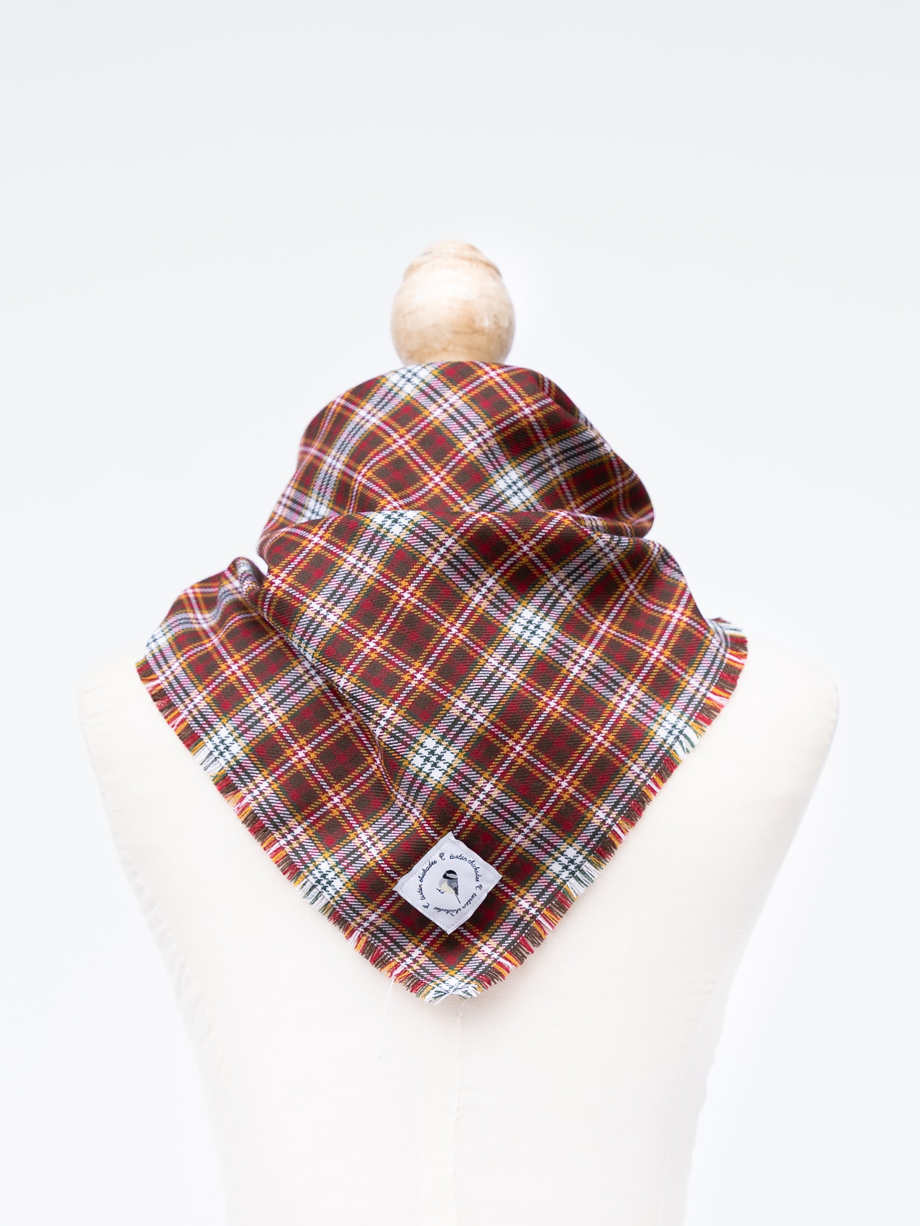 The Tundra Twilight Tartan Bandana from Tartan Chickadee® adds a touch of style to any outfit. Featuring our distinctive Tundra Twilight tartan, this bandana is perfect for wearing around your head, hair, or neck. Inspired by Alaskan autumn, its rich, earthy tones bring versatile elegance and charm.