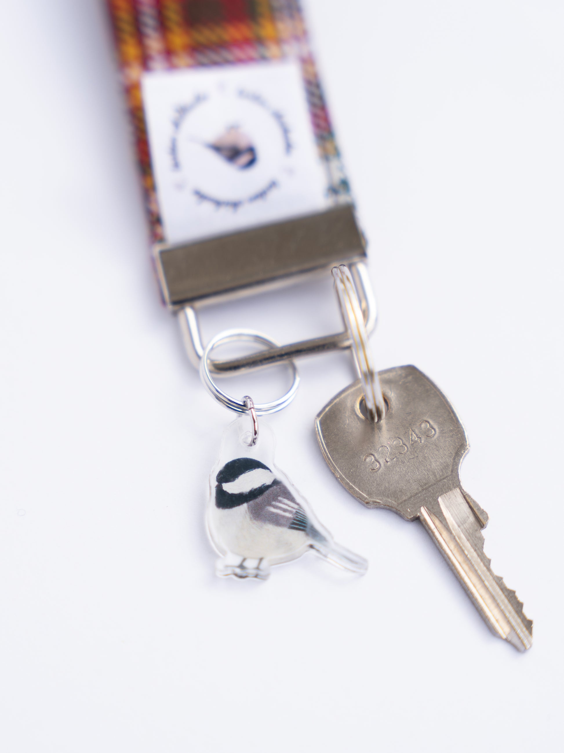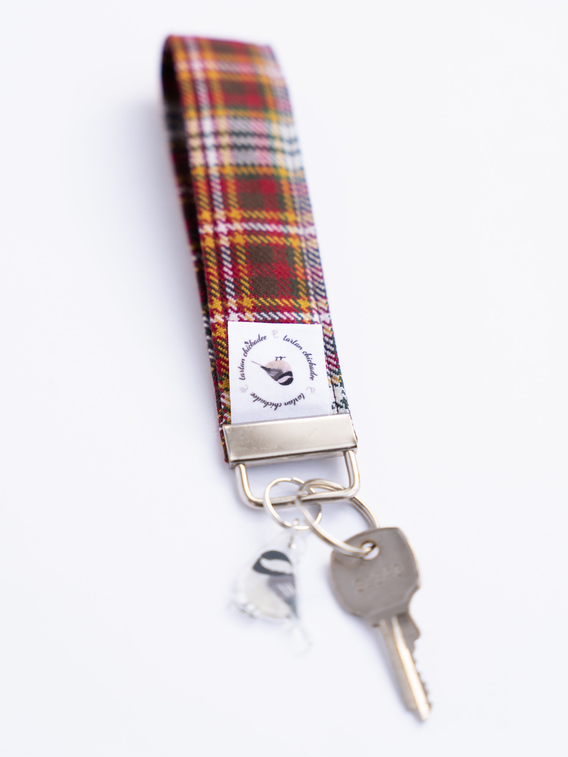 The Tundra Twilight Key Fob is a stylish and practical accessory from Tartan Chickadee® Adorned with our unique Tundra Twilight tartan and a cute acrylic Chickadee mascot, this key fob adds charm to your keys. Handy and durable, it keeps your keys secure and easy to spot, blending function with flair.